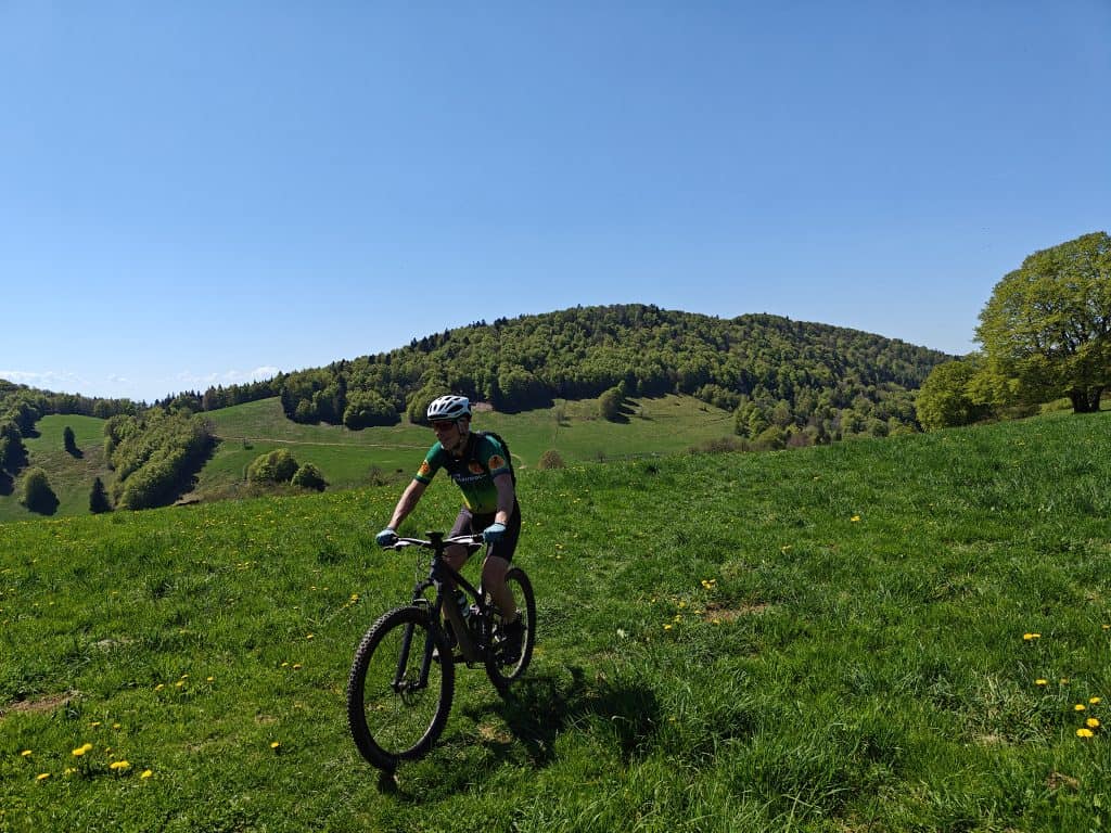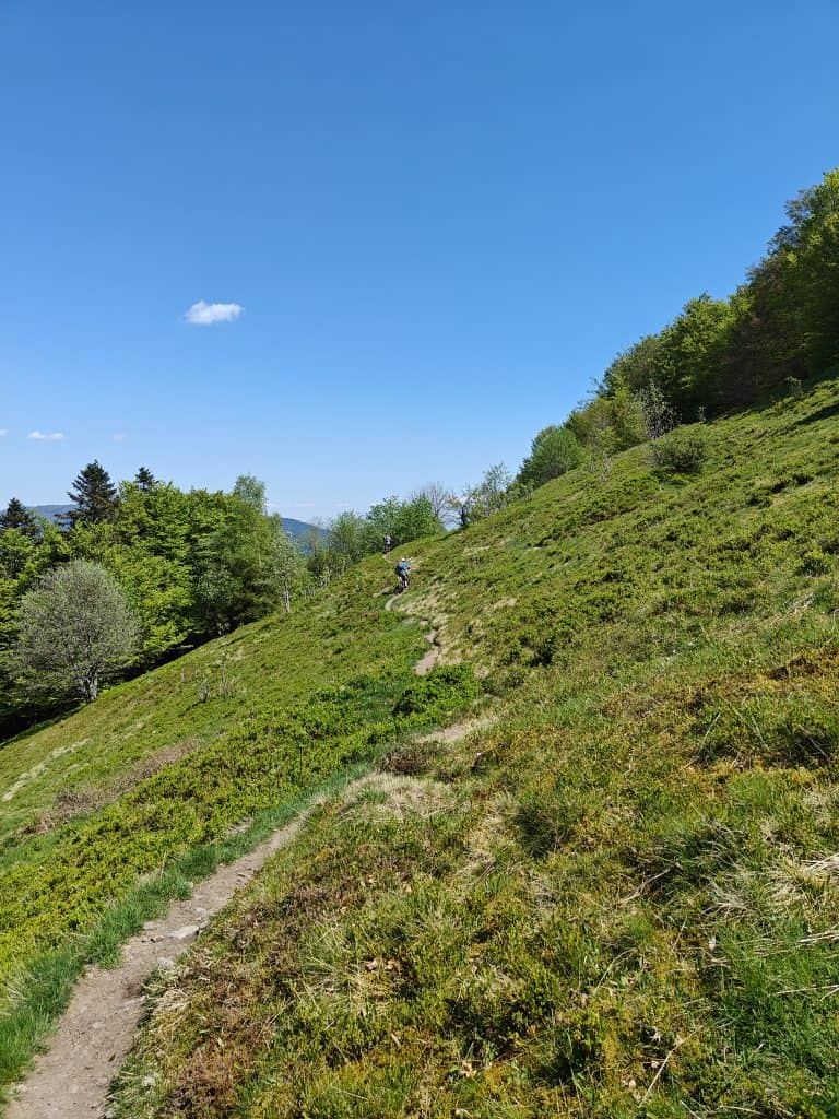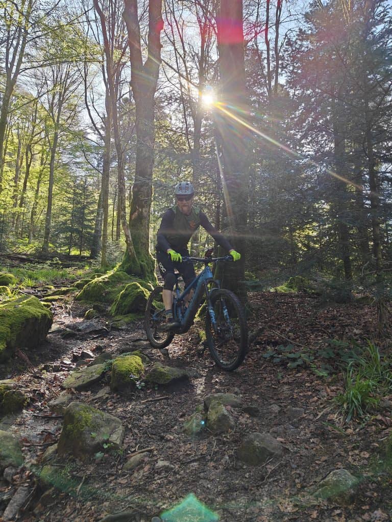 Wij waren zijn eerste gasten die met hem het mooie gebied van de Vogezen in trokken, omgeving Giromagny. De eerste rit was al een behoorlijke wake up call… Nog maar nauwelijks op pad met de E-mtb kregen we al de nodige uitdagingen voor onze wielen. Dit was de opmaat voor een hele mooie MTB week in een schitterend decor.